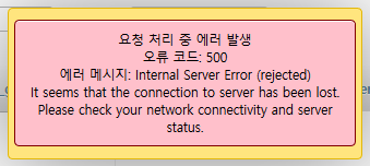Internal Server Error(rejected) 에러가 발생했습니다.