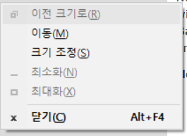 먼저 문제의 창이 보이지 않는 상태에서 Alt(알트) + Space(스페이스) 키를 같이 눌러 줍니다. 그러면 위와 같이 설정 메뉴가 하나 뜹니다. 이 상태에서 단축키 M을 입력해주세요.
