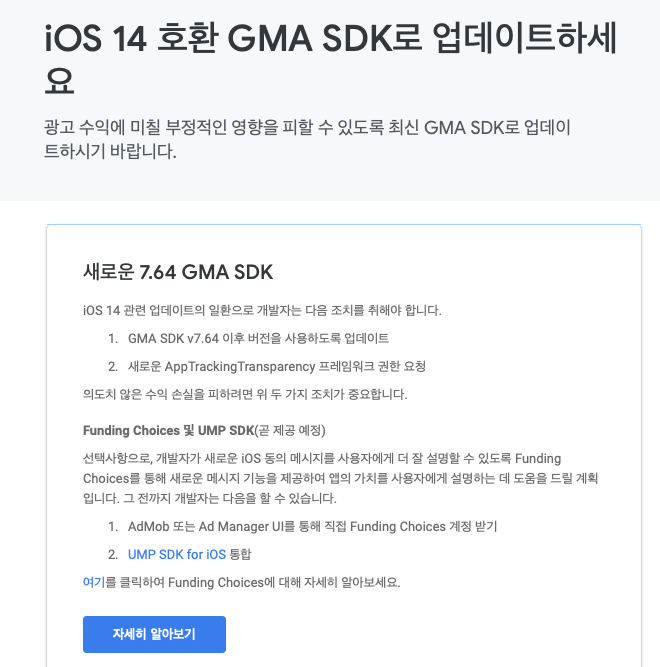 iOS 14 호환 GMA SDK로 업데이트하세요(AppTrackingTransparency)
