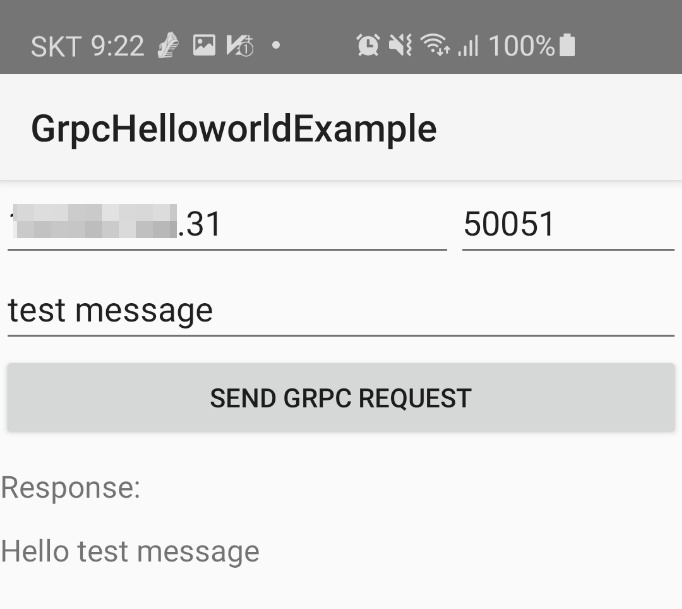 서버쪽 코드를 좀 보니 port가 50051로 되어있더라구요. 그래서 포트도 제대로 넣고.. 서버 주소도 제대로 넣어봤습니다.