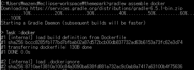 C:\Users\ddd\eclipse-workspace\themepark>gradlew assemble docker --scan
