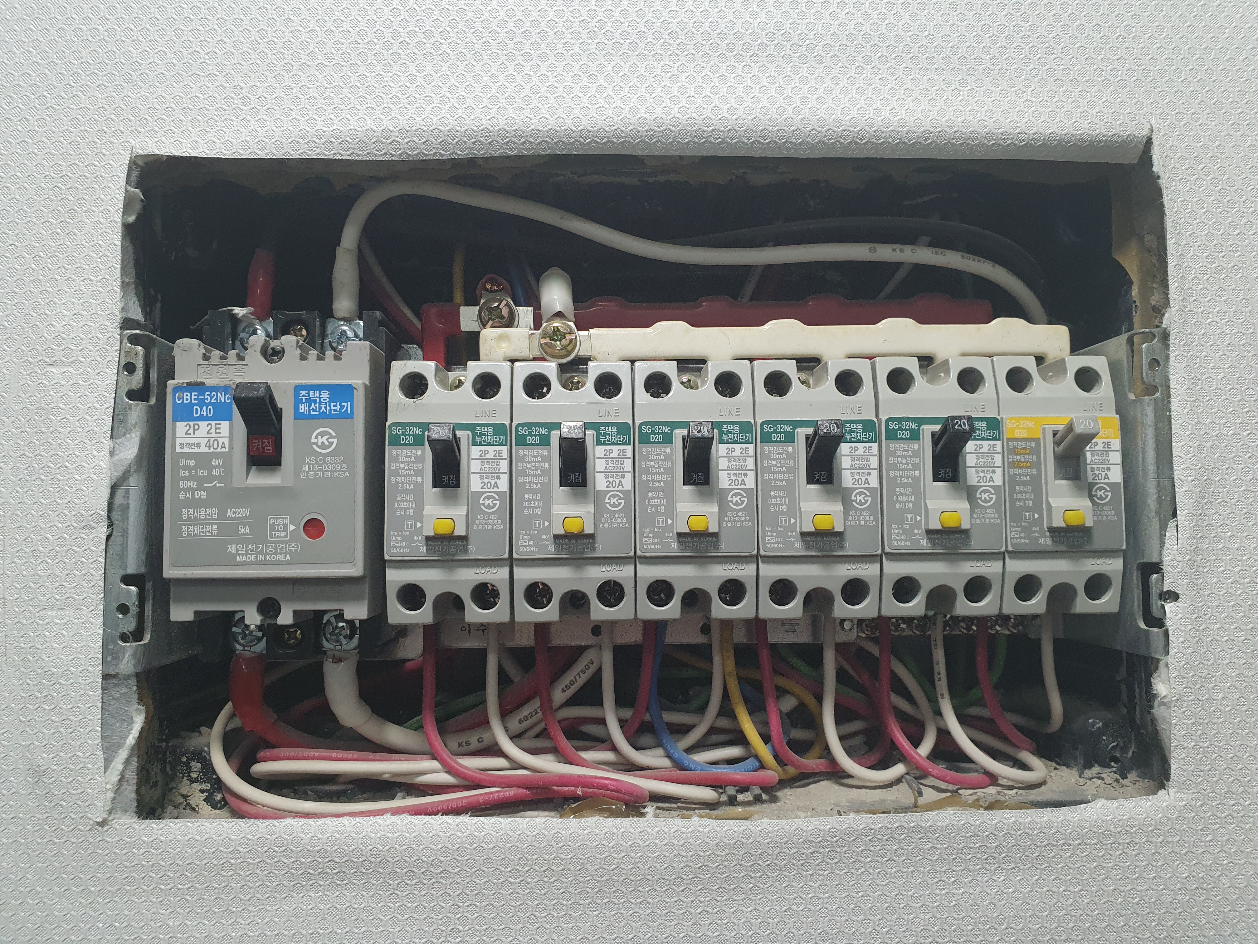 여러 누전차단기로 구성되어 있습니다.