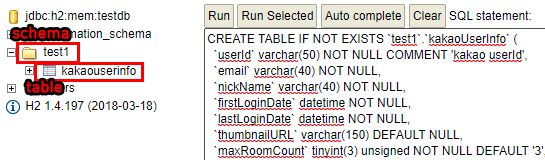 H2에서 간단히 테스트 해보니 schema는 폴더 아이콘으로 나오고 table은 표 아이콘으로 나옵니다.