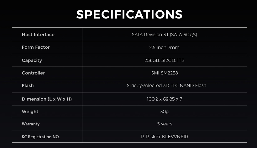 미니슈트 R55에 장착된 하드는 klevv neo n610 256 입니다.