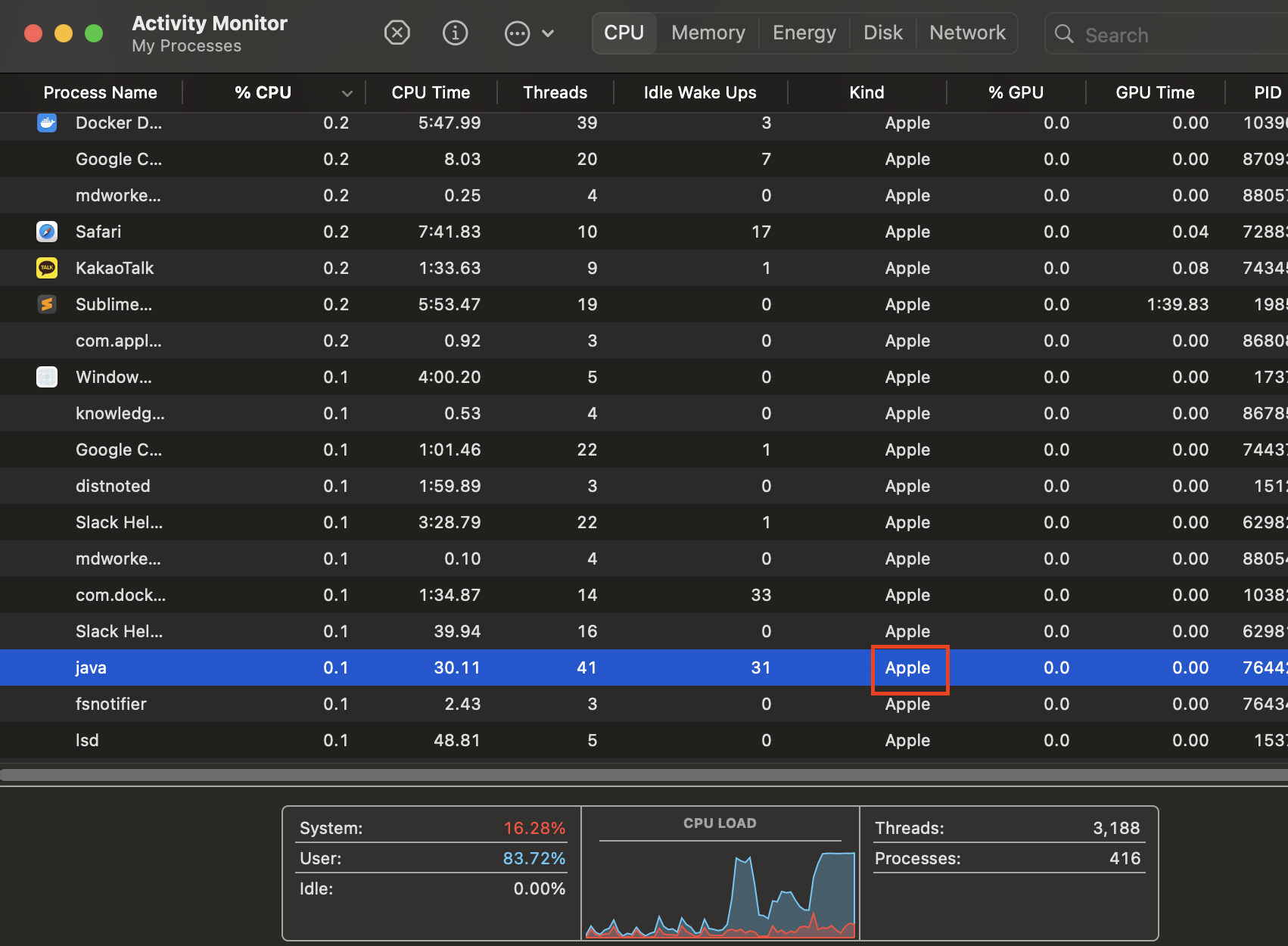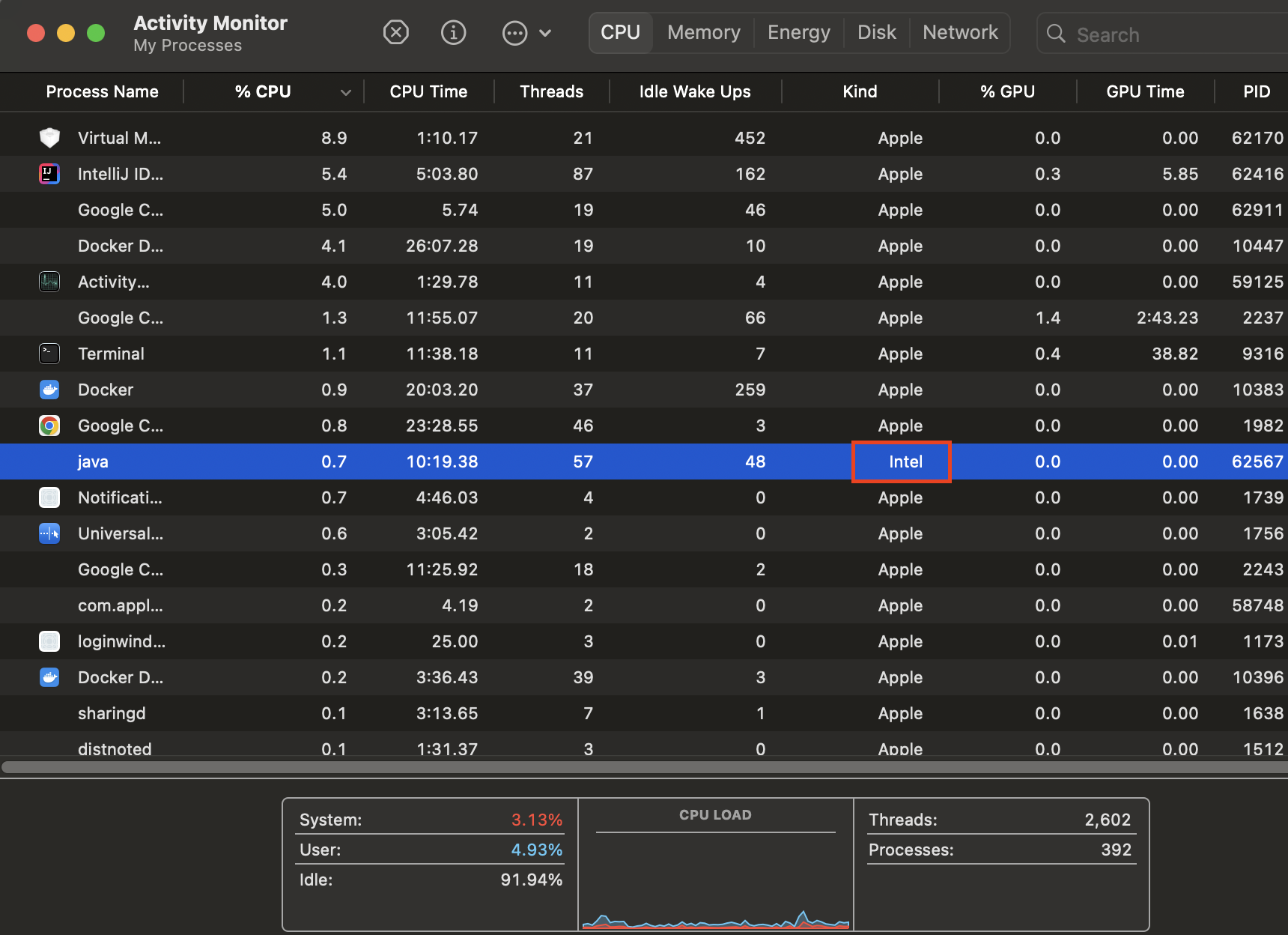 인텔리제이에 의해 실행된 자바가.. 인텔 칩셋용이다..