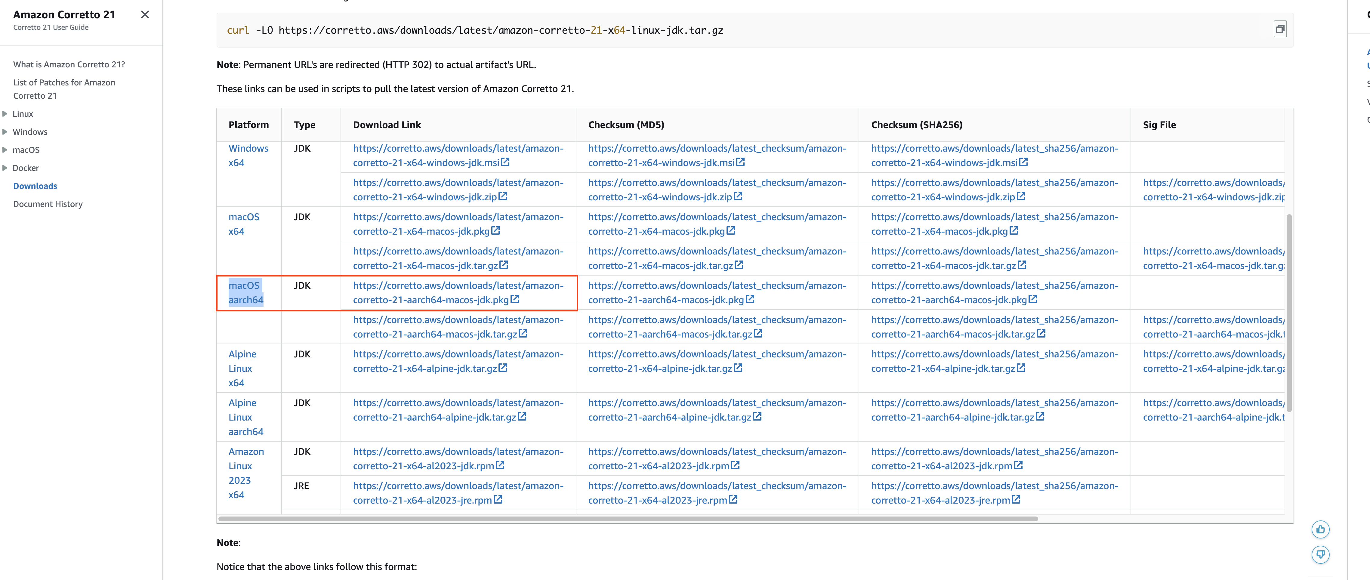 https://docs.aws.amazon.com/corretto/latest/corretto-21-ug/downloads-list.html